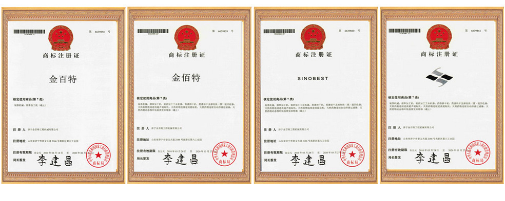 SINOBEST owns entirely independent intellectual property rights, and having applied for 66 patents in total including 13 invention patents, and 44 patents have been authorized till the end of 2016. SINOBEST was authorized to draft independently two pieces of National Industrial Standard: "JB/T 20126-2009 Ultrasonic Extraction Machinery, Terms and Test Method for Ultrasonic Performances", "JB/T 20127-2009 Pipeline Continuous Counter-flow Ultrasonic Extraction Machinery", which were approved by China Industrial and Information Ministry on the date of 17th November, 2009.