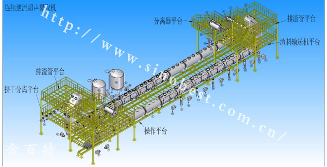 提取裝置,包括多節(jié)超聲提取管、浸泡提取管、螺旋推進器、攪拌器、連軸桿和套、驅(qū)動電機減速機等。